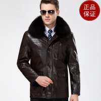 免费试穿 中老年爸爸装外套皮衣带狐狸毛领皮夹克40-50-60岁加绒加厚大口袋2024冬装新款外套潮海宁软皮夹克大码男装