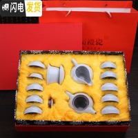三维工匠羊脂玉瓷功夫茶具茶杯套装家用德化白瓷盖碗茶壶干泡小茶盘 马蹄孔雀绿(13头礼盒)