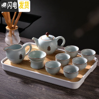 三维工匠哥窑茶具套装冰裂家用整套简约汝窑釉日式开片功夫陶瓷泡茶杯 36x24白盘茶壶套装(哥窑)礼盒装 18件