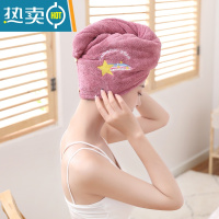 敬平干发帽女加厚护发强吸水浴帽珊瑚绒卡通刺绣洗头发速干毛巾包头巾 彩虹紫[单层绣花]1条装