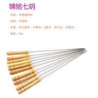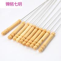 户外烤羊肉串钢签烤针10支装加厚不锈钢木柄圆针烤签_4