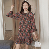 泡澡的蚂蚁春秋装碎花孕妇连衣裙中长款荷叶边长袖孕妇裙 Q303