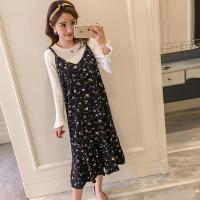 锦铭七玥018春时尚孕妇碎花吊带两套有内衬长袖孕妇连衣裙