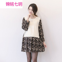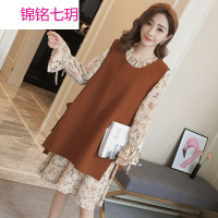 锦铭七玥2018春秋新款孕妇装韩版宽松假两件百搭时尚碎花潮妈孕妇连衣裙