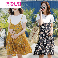 锦铭七玥孕妇装加大码碎花两套连衣裙子韩版夏季新品孕妇裙子-885