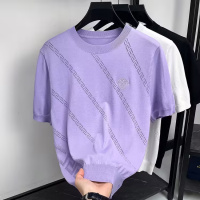 老钱风冰丝伊力特针织短袖男T恤2026夏季新款圆领刺绣休闲男士T恤