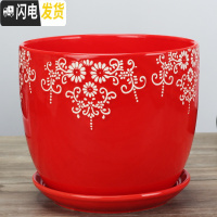 三维工匠中国风大红色陶瓷花盆批有孔/喜庆花盆纯红个性创意花盆/免邮 红色(171) 特大花盆容器