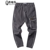 莞馨日系大口袋磨白休闲裤男裤子2017春季美系青少年修身小脚哈伦裤潮