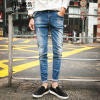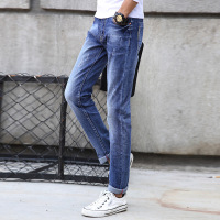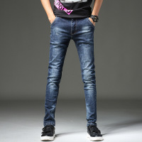 秋冬新款韩版磨白牛仔裤男士青少年修身弹力小脚裤男裤图片色