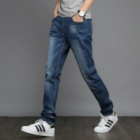 2017夏男牛仔裤中年弹力修身男裤商务中腰水洗磨白牛仔长裤图片色