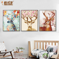 魔术手diy数字油画客厅风景花卉动物油彩手工填色鹿手绘装饰画