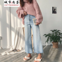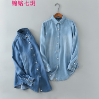 锦铭七玥季女装新款韩版下拼接天丝牛仔衣水洗磨白牛仔衬衫女批