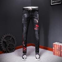 欧洲站高端男士冬季重工刺绣花水洗磨白弹力猫须修身小脚牛仔裤