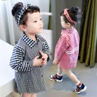 阔仔仔女童格子衬衫裙2018春秋新款小女孩宝宝中长款全棉连衣裙