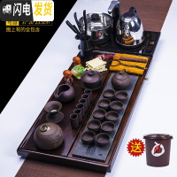 三维工匠整套紫砂喝茶功夫茶具套装家用陶瓷茶杯自动上水一体茶台茶道茶盘 15棕卧龙汝窑自动黑 22件
