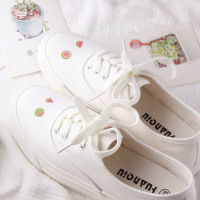 小白鞋女系带韩版学生百搭手绘鞋帆布鞋女学生韩版原宿ulzzang