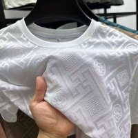 专柜新款男士冰丝短袖t恤男夏季印花桑蚕丝粉色圆领宽松上衣潮牌