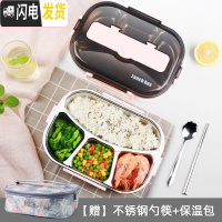 三维工匠上班族饭盒健身减脂学生1人带饭分格型便携304不锈钢带盖保温 [4格北欧粉]304饭盒1100+勺筷+饭盒包