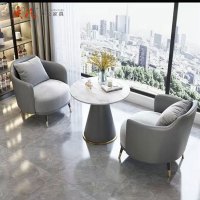 晋舰 洽谈桌北欧轻奢奶茶店皮质茶桌椅组合简约一桌两椅 浅灰拼棕