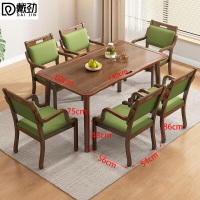 戴劲木制老年桌适老化餐桌椅组合养老院康养机构休闲桌 胡桃色一桌6椅