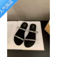 SUNTEK女时装凉鞋2023年夏季新款平底一字带水钻拖鞋女外穿ins潮凉拖鞋