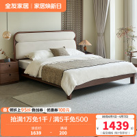 全友家居新中式舒适软包床屏橡胶木实木脚板木床卧室家具双人床