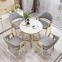易企采 一桌四椅 简约洽谈桌椅组合商用接待桌椅会客接待小圆桌办公室休闲桌子