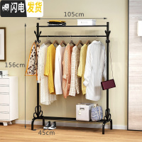 三维工匠单杆式晾衣架落地简易挂衣家用卧室内晒衣架折叠阳台凉衣服的架子 旗舰款-105cm-黑色(上+下有置物板晾衣架配件