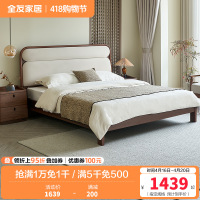 全友家居新中式多功能布艺软包双人床1.8米2米主卧室实木高脚床