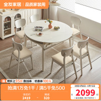 全友家居餐桌椅组合奶油风伸缩实木框架6-8人可变圆折叠饭桌