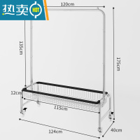 敬平福利多家居挂衣架落地卧室晾衣架多功能置物架移动衣帽架衣服架子 120装衣篮加长款[水晶轮+包边]