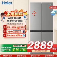海尔家宴博卡灰浮光跃金十字对开门冰箱BCD-506WGHTD14GYU1 506升新1级变频净味杀菌自动除霜支持干湿分储