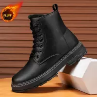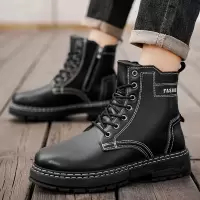 新款保暖加厚黑色男士机车靴侧拉链舒适百搭潮流户外徒步男靴
