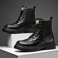 秋冬新款男士时尚休闲马丁靴中帮户外黑色潮流街头百搭机车靴