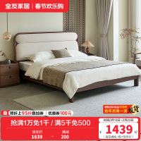 全友家居新中式卧室生态科技皮舒适软靠床屏橡胶木板木床双人床