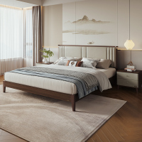 新中式舒适软包床屏双人床