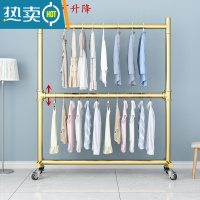 敬平双杆式衣帽架落地卧室阳台简易晾晒衣架双层挂衣杆升降晾衣架带轮 双层 金色长60高185带轮