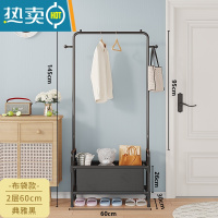 敬平晾衣架落地衣帽架多功能多层收纳架卧室内学生宿舍收纳置物一体架 2层-时尚黑+40L收纳袋