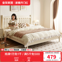 全友家居新中式卧室生态科技皮舒适软靠床屏橡胶木板木床双人床