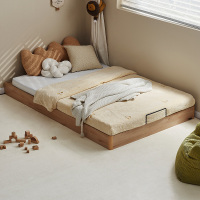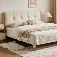 全友家居新中式卧室生态科技皮舒适软靠床屏橡胶木板木床双人床