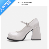 SUNTEK长腿叔叔定制女鞋玛丽珍鞋复古小皮鞋女粗跟黑色新款高跟鞋女