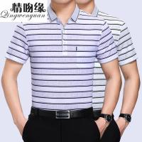 情吻缘男装2018新款夏装中老年条纹T恤短袖桑蚕丝爸爸装