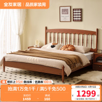 全友家居法式复古橡木实木床1.8x2米主卧室双人床小户型高脚床