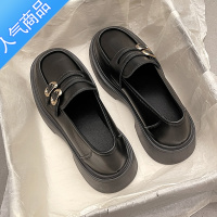 SUNTEK黑色小皮鞋女2023年新款女鞋春秋软妹英伦风鞋子厚底单鞋乐福鞋潮