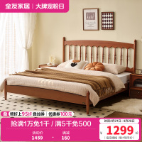 全友家居法式复古橡木实木床1.8x2米主卧室双人床小户型高脚床