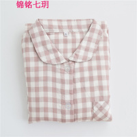 锦铭七玥女全棉睡衣长袖双层纱套装 简约宽松格纹居服春秋季厂