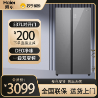 海尔 BCD-537WGHSSEDSN 对开门 537升 钢化玻璃面板 自动除霜 变频风冷 1级能效 家用大容量智能控温