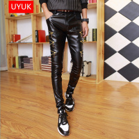 UYUK 2017秋冬季新款男皮裤拉链装饰潮男pu皮裤青年夜店KTV发型师时尚修身显瘦裤子