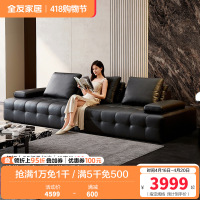 全友家居2024新款意式极简客厅直排劳伦斯大黑牛真皮沙发