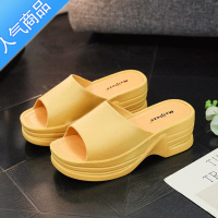 SUNTEK拖鞋女厚底中跟防滑塑料家居室内坡跟松糕纯色韩版夏季黄色凉拖鞋